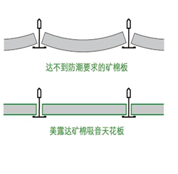 泰山采用高品質(zhì)原材料生產(chǎn),并運(yùn)用先進(jìn)的工藝對(duì)對(duì)所有產(chǎn)品進(jìn)行防潮處理。泰山天花板具有優(yōu)秀的防潮性能,在較高溫度和相對(duì)濕度的情況下也不會(huì)下陷或考扭曲。